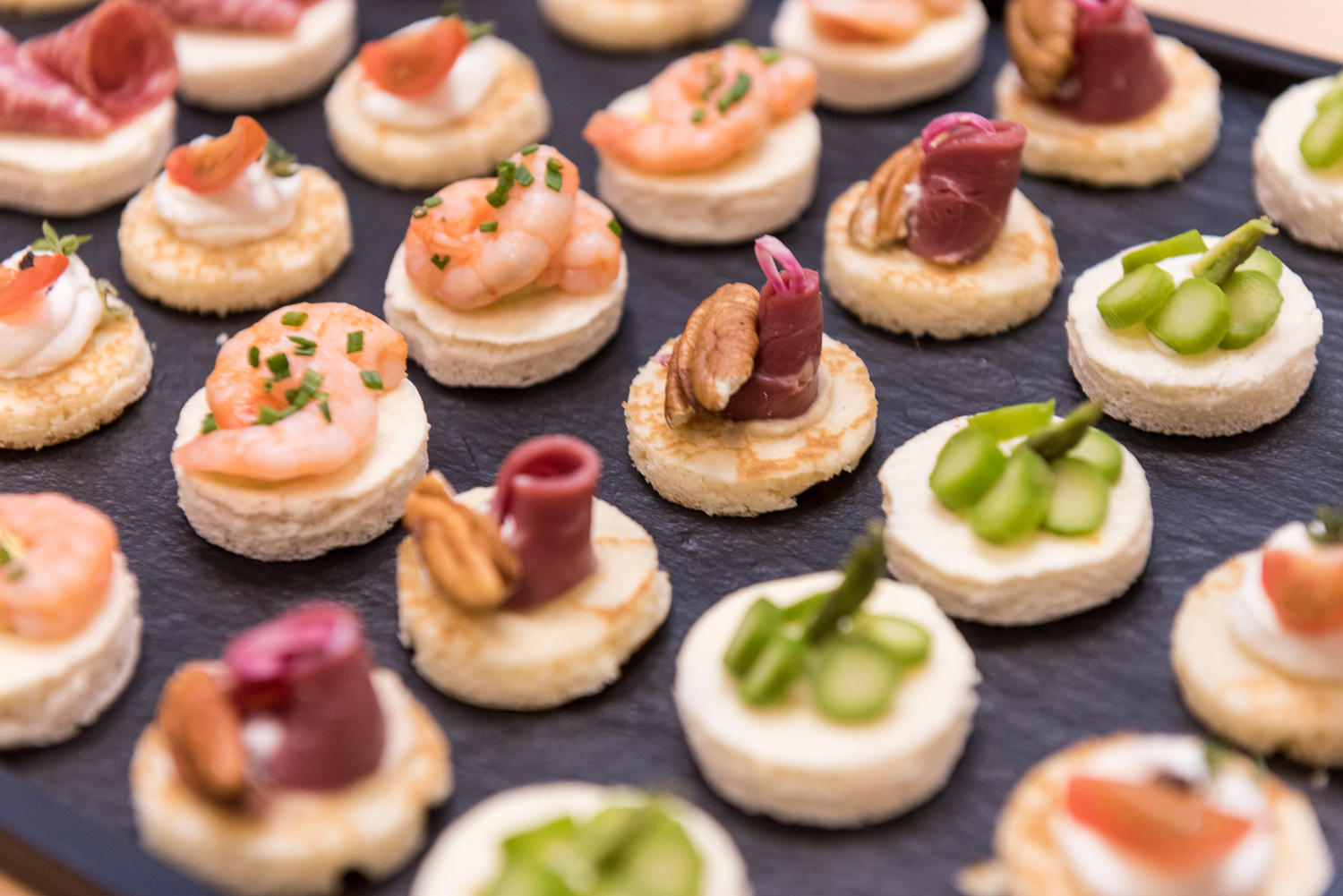 Assortment of canapés and blinis